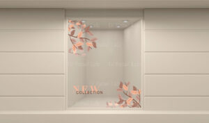 El adhesivo va pegado por el exterior del ventanal.
