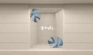 El adhesivo va pegado por el exterior del ventanal.